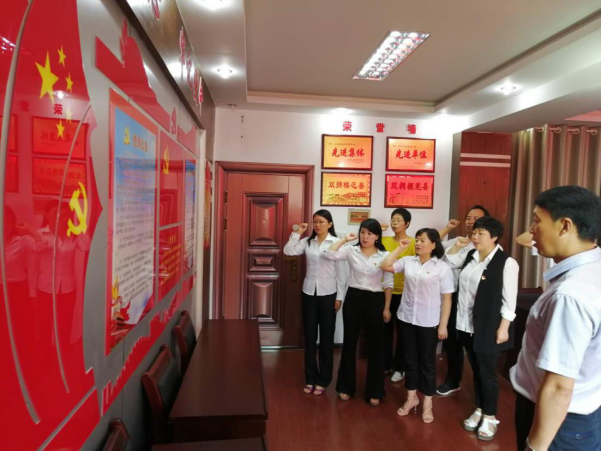 重温一遍入党誓词。面对鲜红的党旗,全体党员庄严地举起右手,重温对党的忠诚誓言,更加坚定信念。