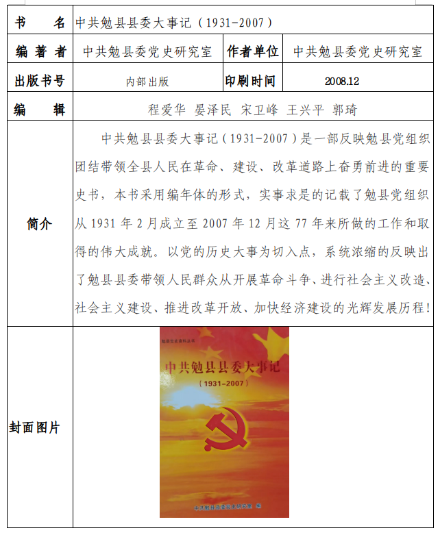 中共勉县县委大事记(1931-2007)
